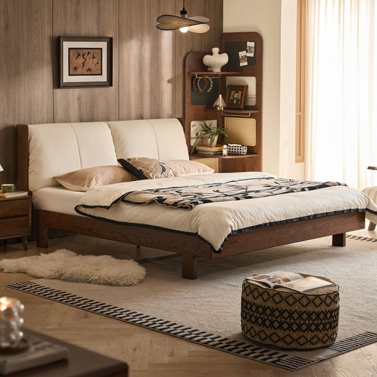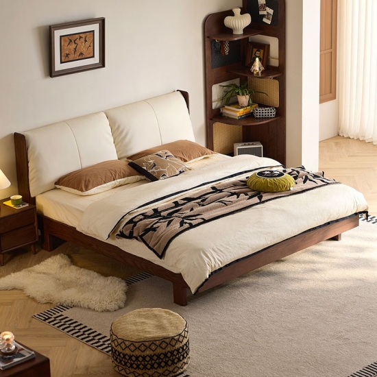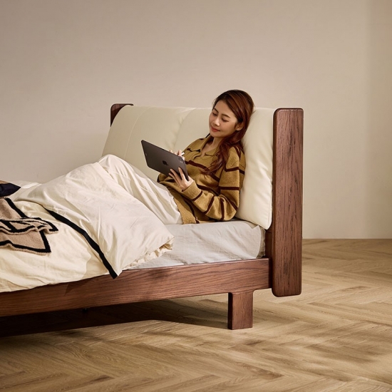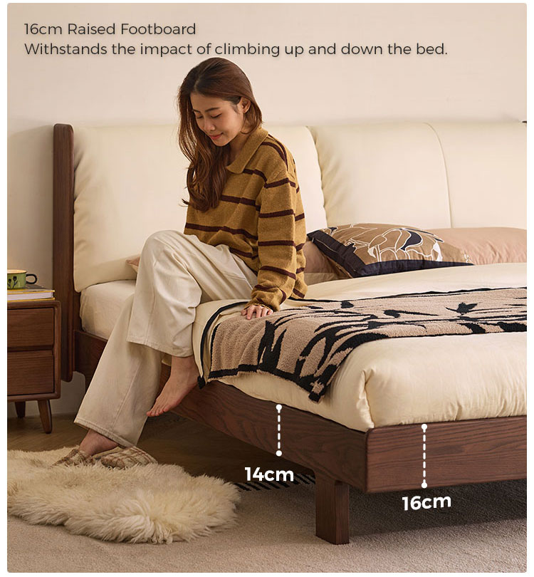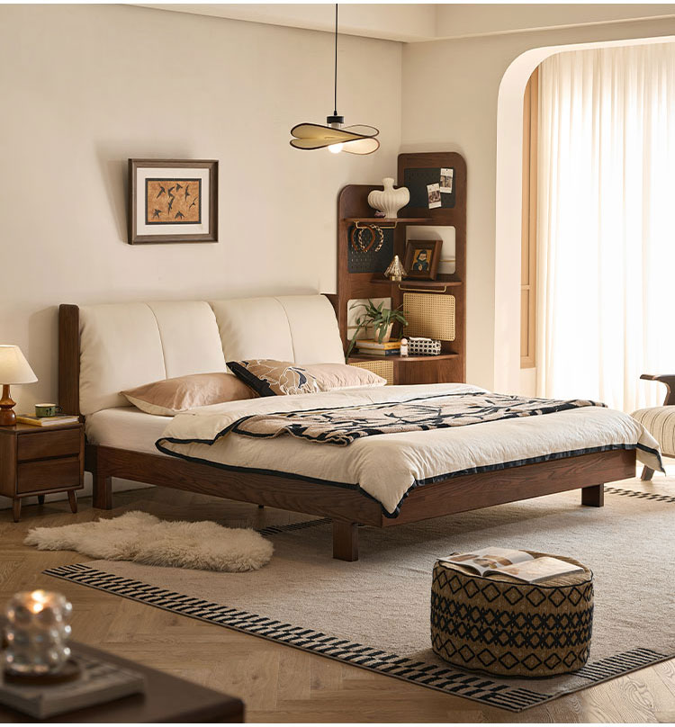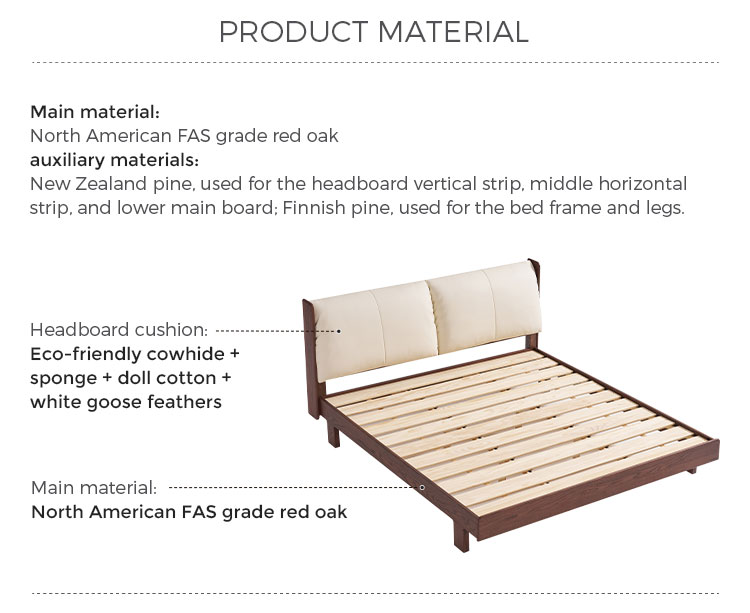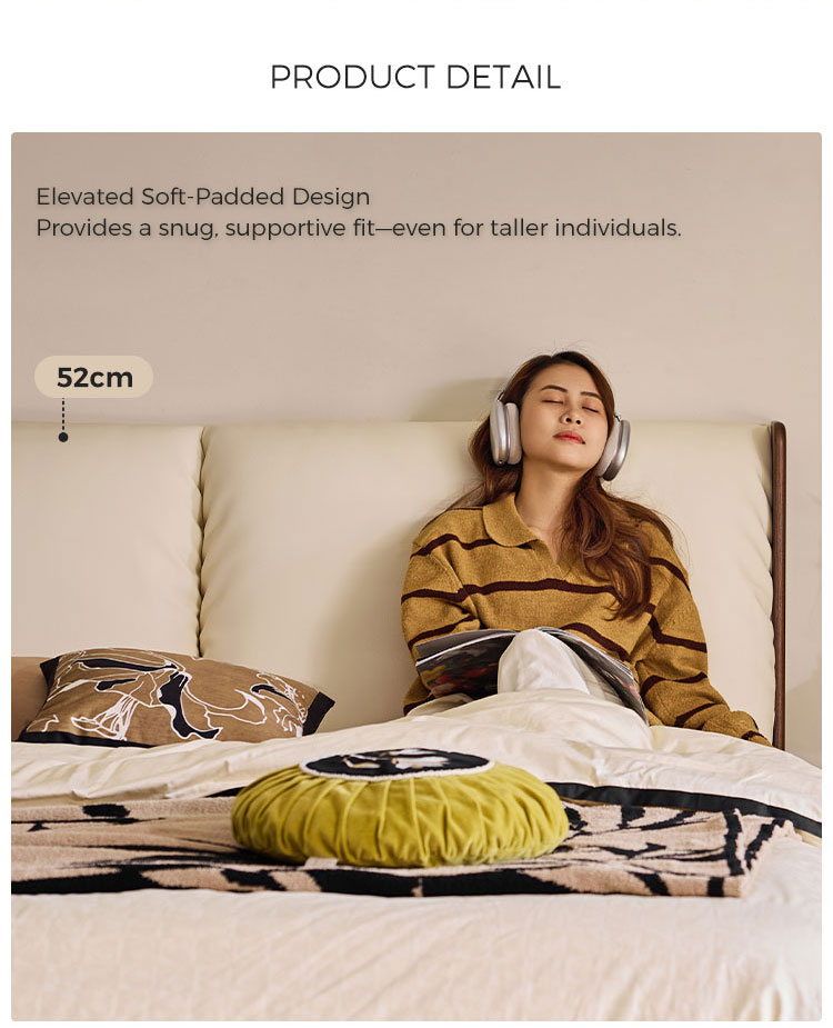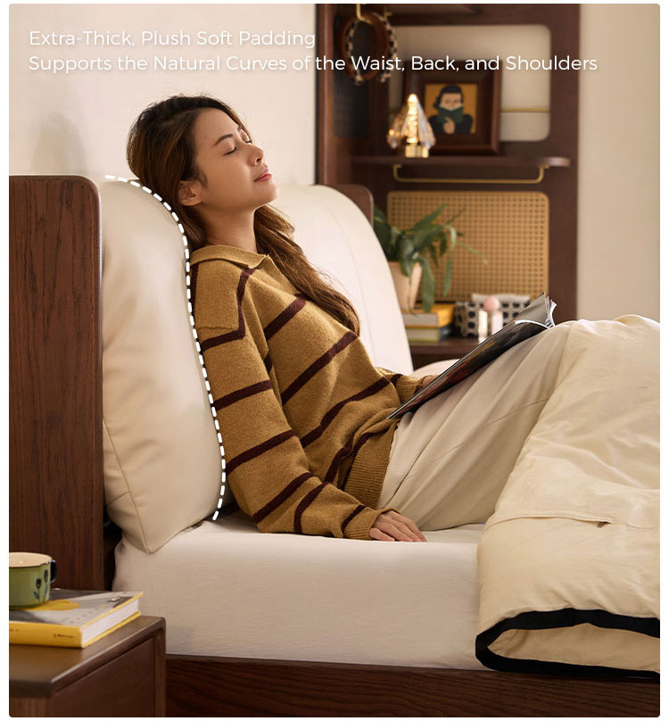 Elevate your bedroom with the perfect harmony of nature and luxury. This Mid-Century Modern bed combines the enduring strength of FAS-grade solid wood oak with the tactile elegance of a premium leather headboard. Designed for both aesthetic timelessness and ultimate relaxation, it features a plush backrest filled with high-resiliency down and fiber, offering a cloud-like lounging experience.