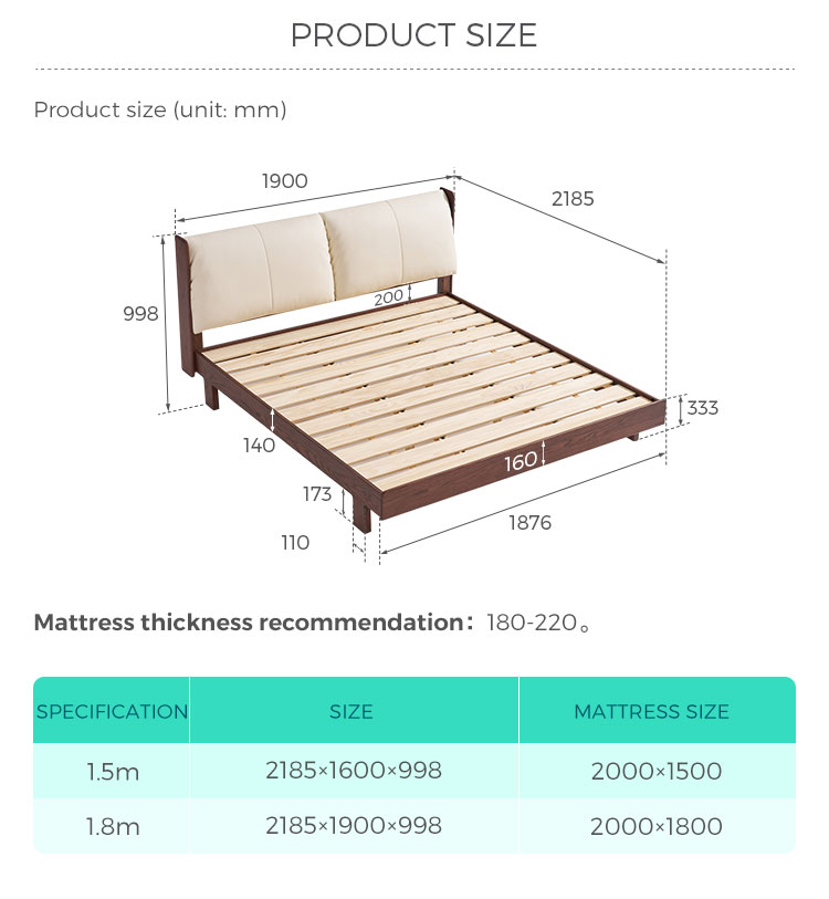 Leather Headboard:High-quality leather upholstery that adds a touch of sophistication and is easy to maintain.