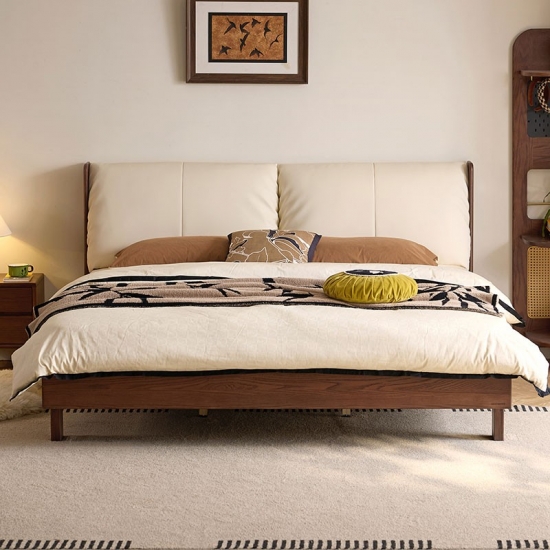 7Premium Solid Wood Supple Leather Bed with Mid-Century Design LH586A6-A