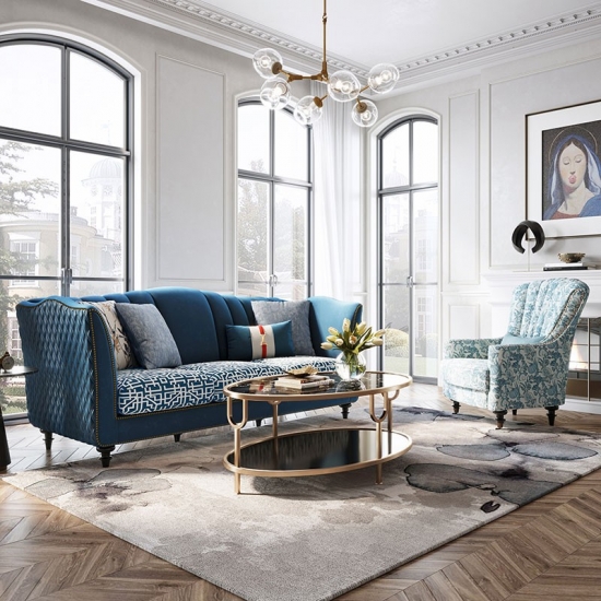 American style family fabric sofa living room simple and luxurious Blue
