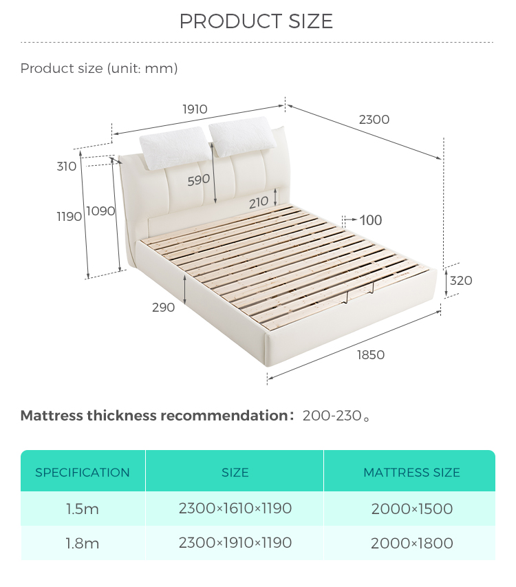 ✔ Low-Profile Design – 14-inch (35 cm) underbed clearance for storage flexibility.