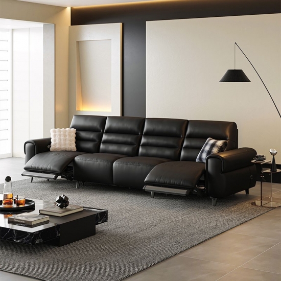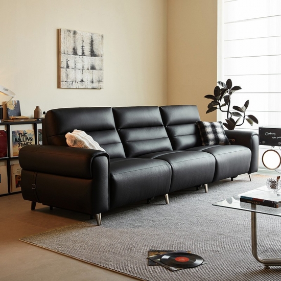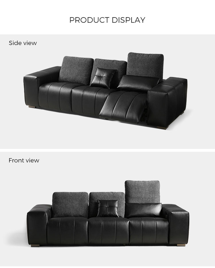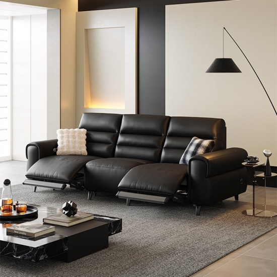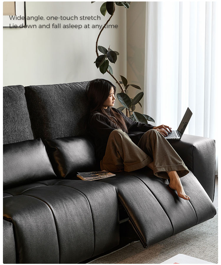 Elevate your relaxation with LINSY Black Color Leather Recliner Sofa, designed for modern living spaces that demand both comfort and sophistication. This sleek, multi-functional sofa features a smooth leather upholstery that’s easy to clean and highly durable, while the adjustable footrest allows you to recline into your perfect position—whether reading, napping, or binge-watching your favorite shows.