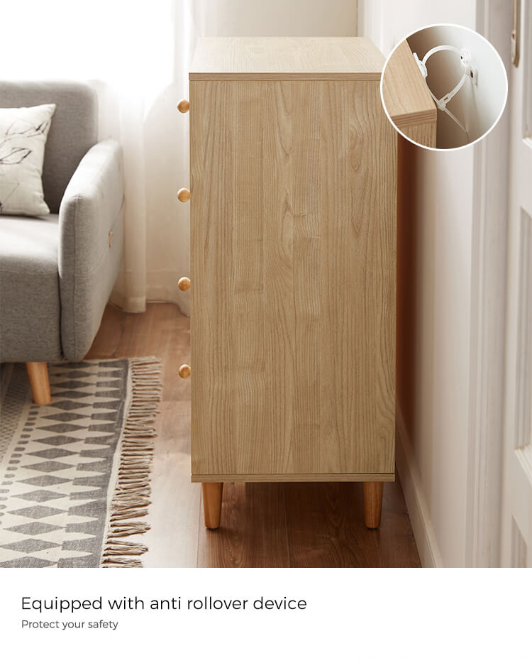 This durable & engineered wood cabinet comes with 4 tilted solid wood legs and an anti-tip kit for added stability(up to 150 pounds), so no wobbling or collapsing. It has enough space to storage and it can be place in the living room or bedroom.
