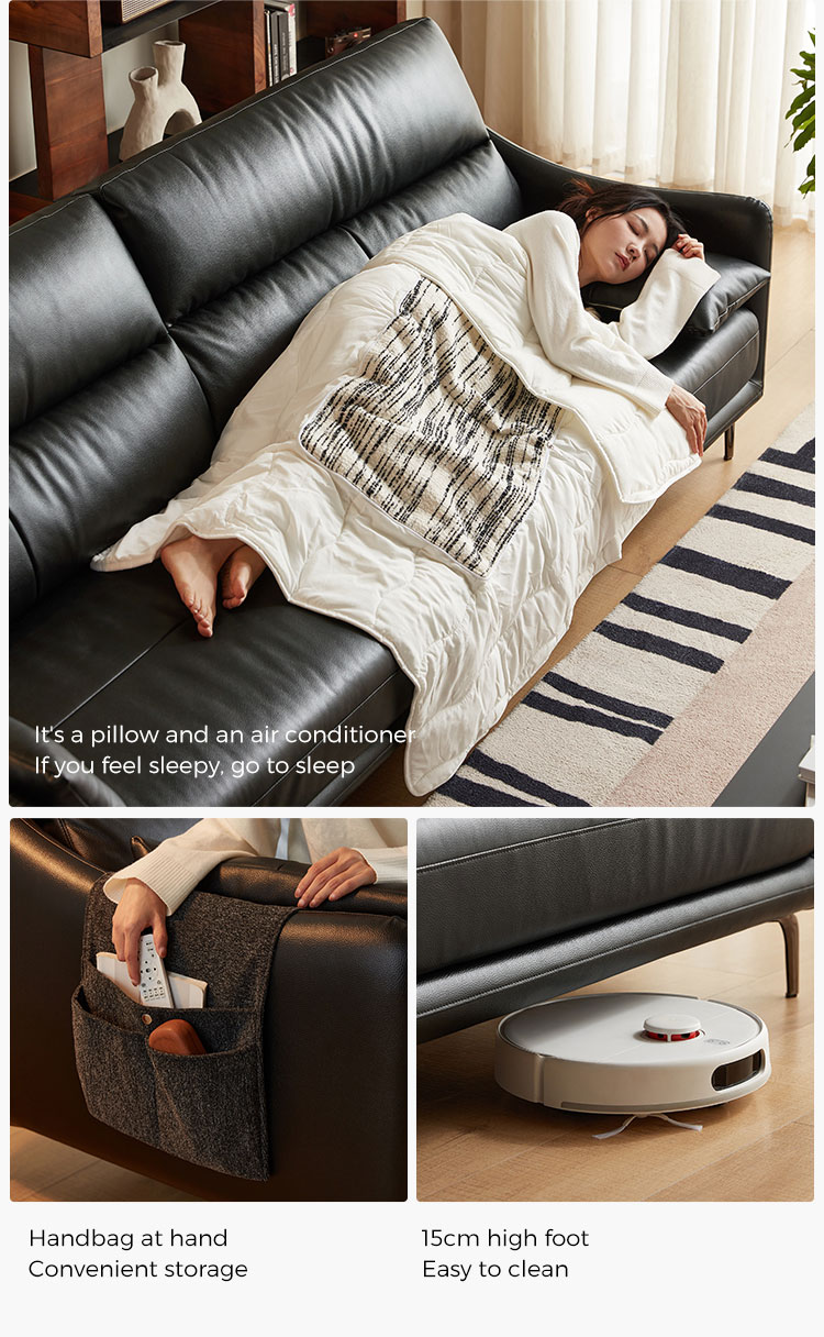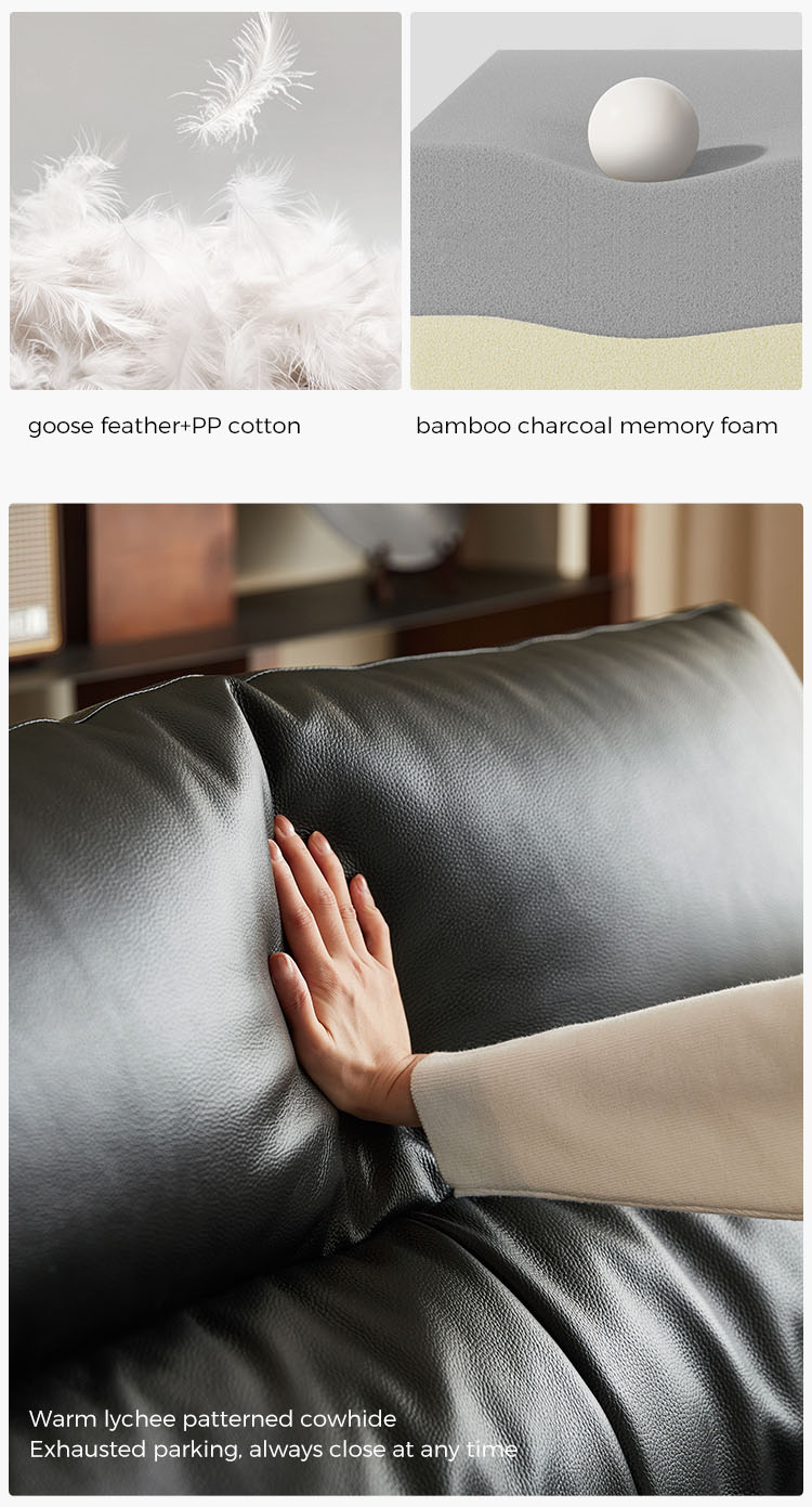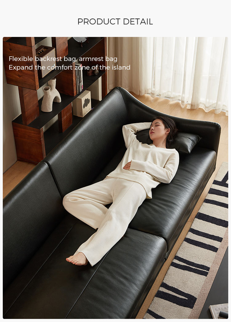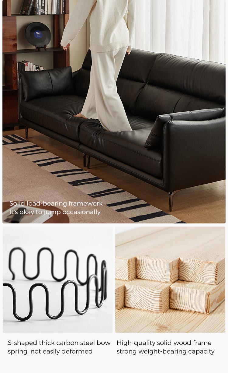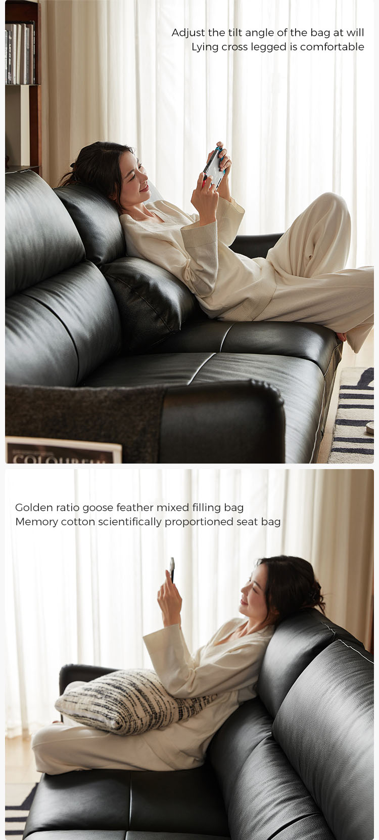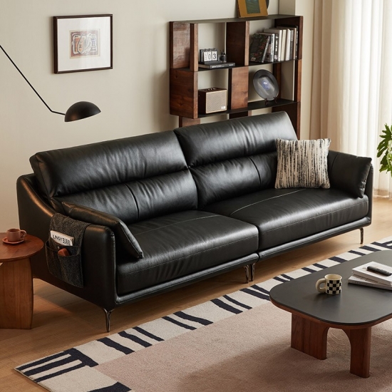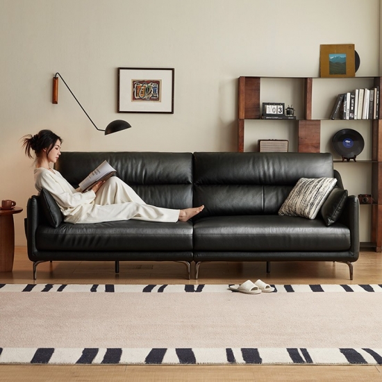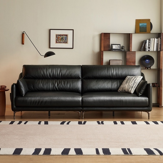 The sofa is a sleek designed for modern living. Upholstered in premium aniline leather, it boasts low back deep seats that provide luxurious comfort and style. Its contemporary design and high-quality materials make it a standout addition to any sophisticated interior.
