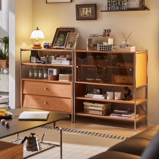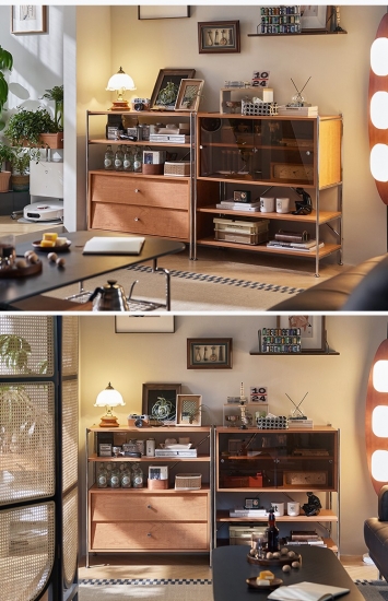 Wood Storage Rack Living Room Cabinet with Drawers KQ1P-A |